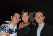 Chvilku před půlnocí se na podiu zjevil Vašek Klouda - absolutní fenomén svého oboru - footbagu aneb žonglování nohama, kolem nohou, kolem hlavy, za hlavou, ve výskoku, to vše s malým neskákavým míčkem. Nezjevil se sám, doplnil jej další skvělý performer Dexter, jemuž jsou zase naprosto vlastní roztodivné triky s kulatým talířem jménem frisbee. Vašek ho doplňoval nadupaným beatboxem a publikum se očividně bavilo, poněvadž bylo svědkem něčeho, co pravděpodobně ještě nikdy nevidělo. Po této multyžánrové show byla pro neostýchavce opět připravena soutěž o hadry RipCurl a Animal. Poněkud konzervativnější soutěž v patování do golfové jamky mohli přítomní podstoupit díky našemu partnerovi - firmě Skycorps. Hlavní cenou byla exkluzivní sada golfových míčků. S nástupem nového dne se za koly objevil Dj P@co a spustil mega-energetický našlapaný set nevyhnutelně spojený se svou pověstnou šílenou show zpoza gramců. Záhy se připojil i pan pumping-house mistr Dj Hozzy a bujaré party nestálo vůbec nic v cestě. Ti nejotrlejší z vás ještě po skončení neváhali pokračovat na after v Pekelným baru na Andělu. První akce Nikolajka.com v Radosti byla více než úspěšná všichni měli radost a za to patří díky především vám. Po vánocích následuje zkouškové, tudíž vám dopřejeme nějaký čas na oddech, který bezpochyby využijete, ale hned poté, velmi pravděpodobně ve středu 13.2.2008, se těšte na další díl Niko-party-skládanky, tentokrát s nálepkou Valentýn! DaNeck - Nikolajka team fotky od MaXe |